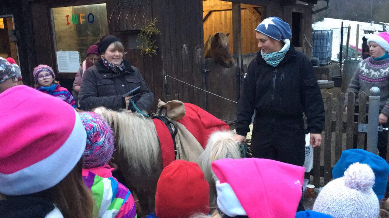 Unsere diesjährige Weihnachtsfeier war genial. Unser Nikolauspony Nero mit dem großen Sack voller Geschenke und mit seinem Einhornengel Benny waren natürlich auch da. Über 40 Kinder freuten sich über die tollen Ponyclubtaschen (Bedruckt von Slangdesign, Selena Lang) und dem Wandkalender der Erlebnisorientierten Reittherapie. Allen Helfern und Eltern ein herzliches Dankeschön. Der Erlös von 346€ ging an die Aktion Sternenregen von Radio Salü.