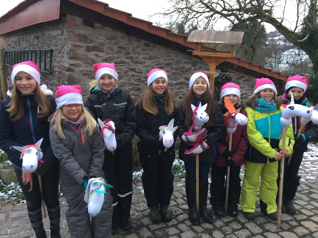 Unsere diesjährige Weihnachtsfeier war genial. Unser Nikolauspony Nero mit dem großen Sack voller Geschenke und mit seinem Einhornengel Benny waren natürlich auch da. Über 40 Kinder freuten sich über die tollen Ponyclubtaschen (Bedruckt von Slangdesign, Selena Lang) und dem Wandkalender der Erlebnisorientierten Reittherapie. Allen Helfern und Eltern ein herzliches Dankeschön. Der Erlös von 346€ ging an die Aktion Sternenregen von Radio Salü.